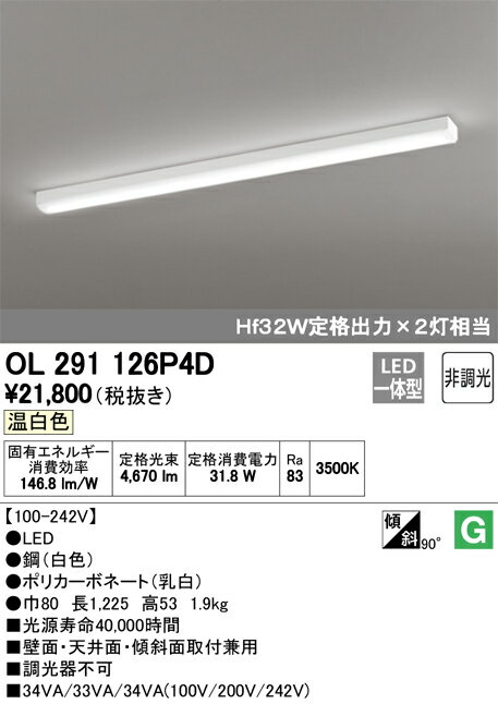 ‡‡‡βオーデリック/ODELIC 照明【OL291126P4D】多目的ベースライト LED一体型 非調光 温白色